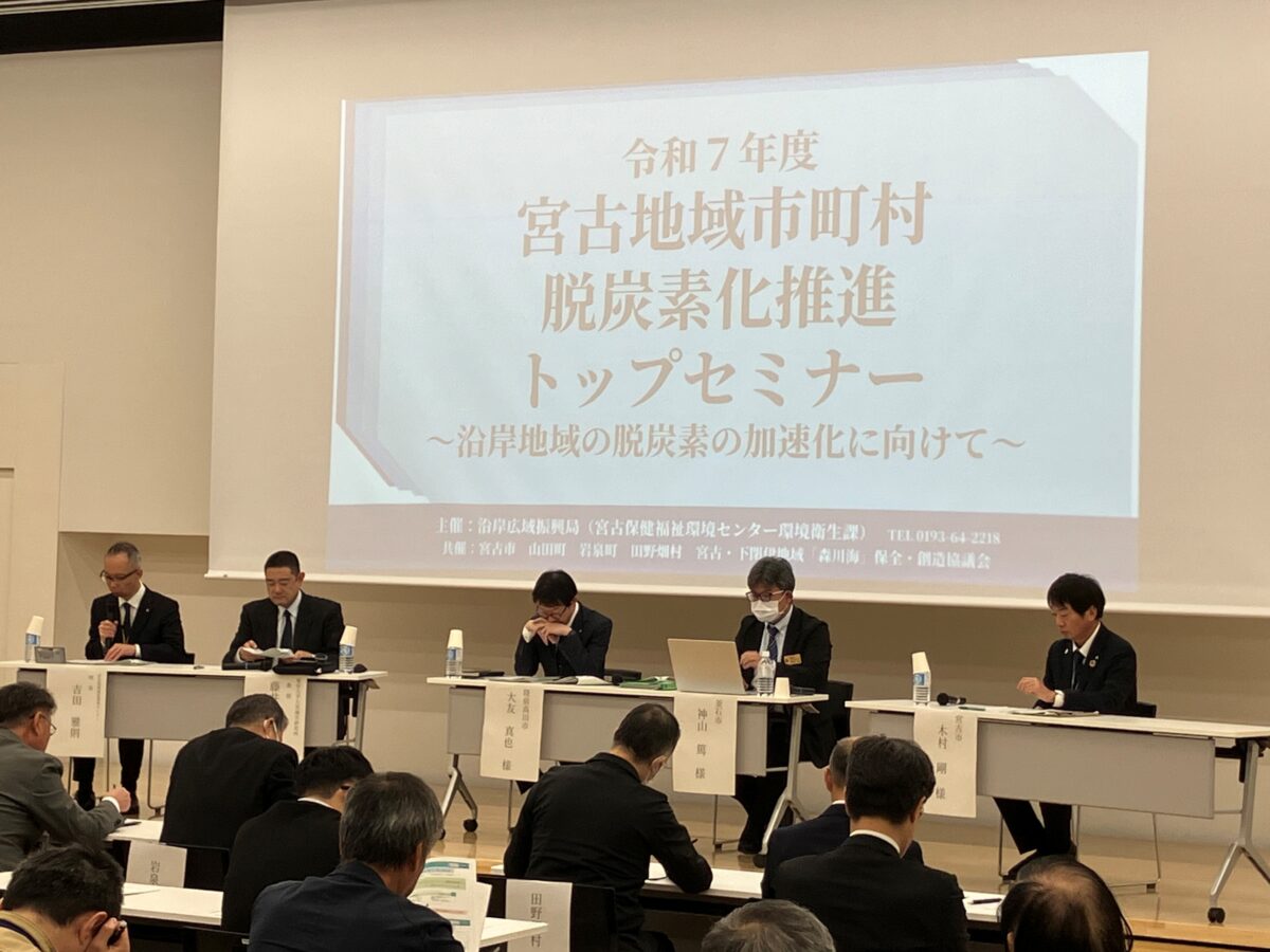 2025年11月17日、宮古市市民交流センターで、岩手県沿岸広域振興局主催の「令和7年度宮古地域市町村脱炭素化推進トップセミナー」が開催されました。